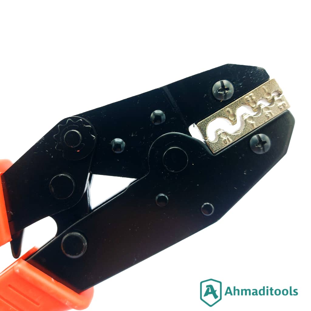 این انبر از آلیاژ فولادی مقاوم تولید شده و فکهای سختکاری شده آن امکان پرس انواع سرسیم روکشدار و بدون روکش را فراهم میکند.